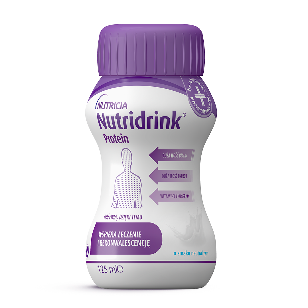 • Нейтральний смак Нутрідрінк Протеїн рекомендується застосовувати для пацієнтів, що проходять хімієтерапію та променеву терапію, особливо за наявності побічних ефектів, пов’язаних з протипухлинною терапією, зокрема інверсії смаку (зміни смакових відчуттів).