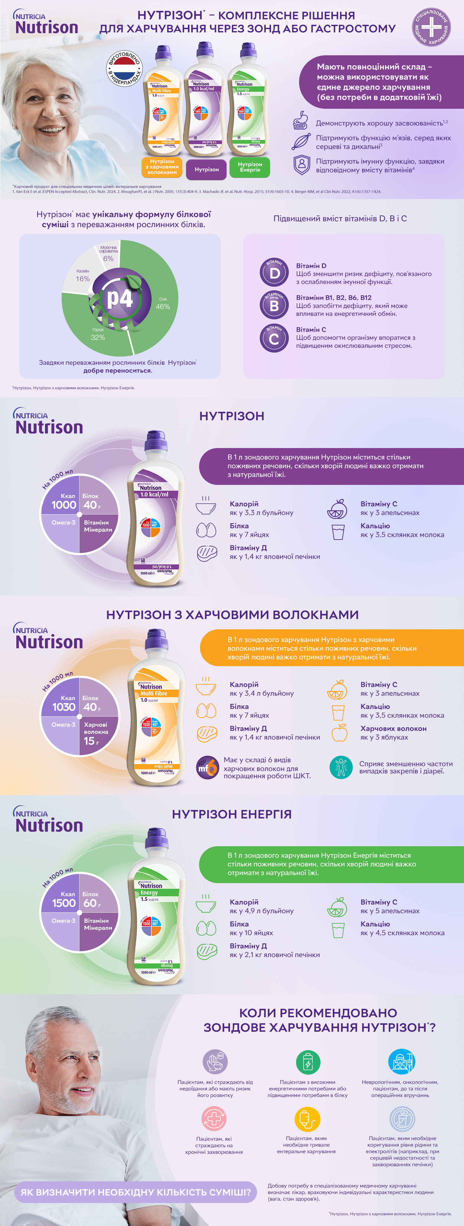 Продукти зондового харчування Нутрізон демонструють хорошу переносимість, харчову ефективність і високий рівень прихильності серед пацієнтів.