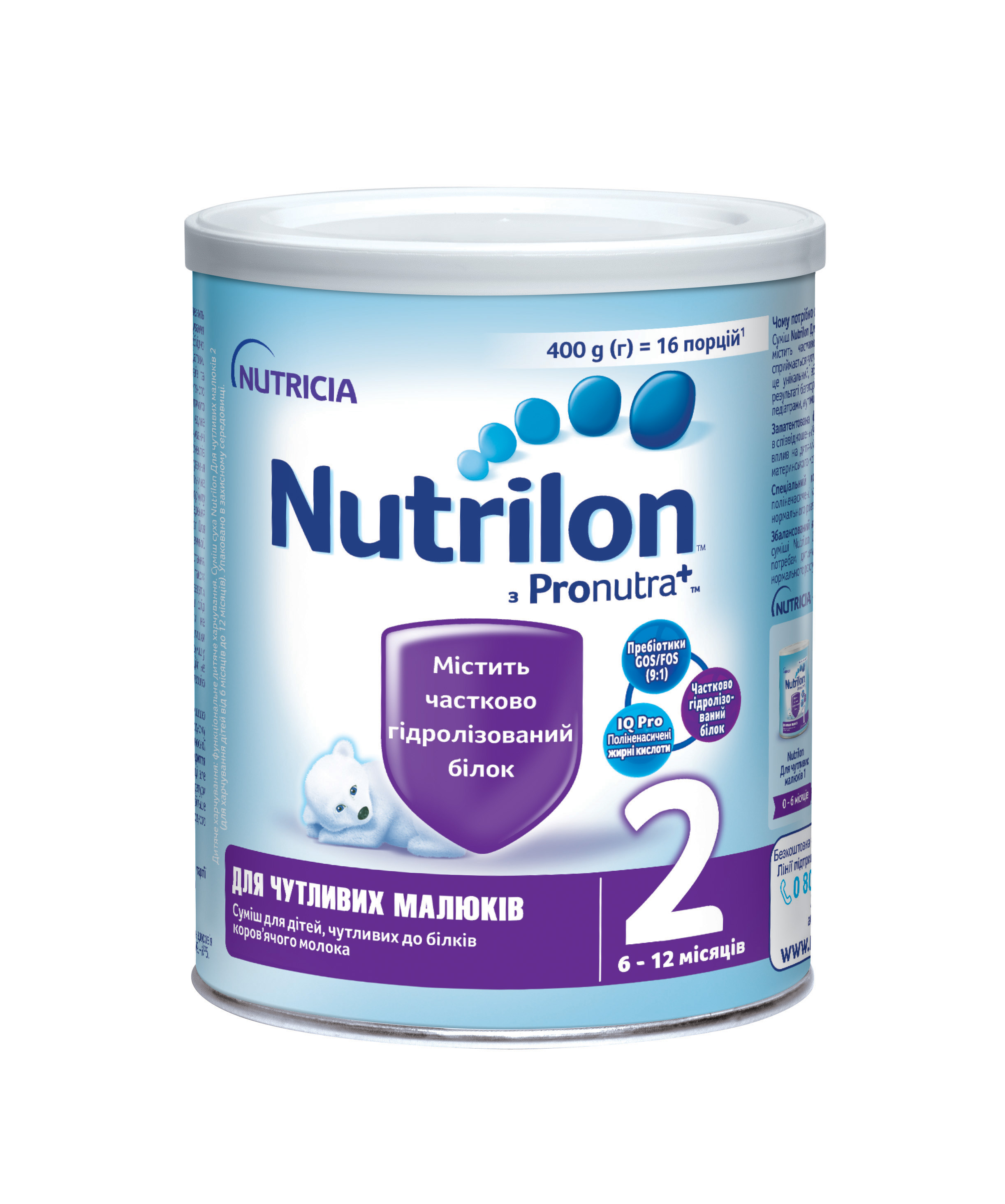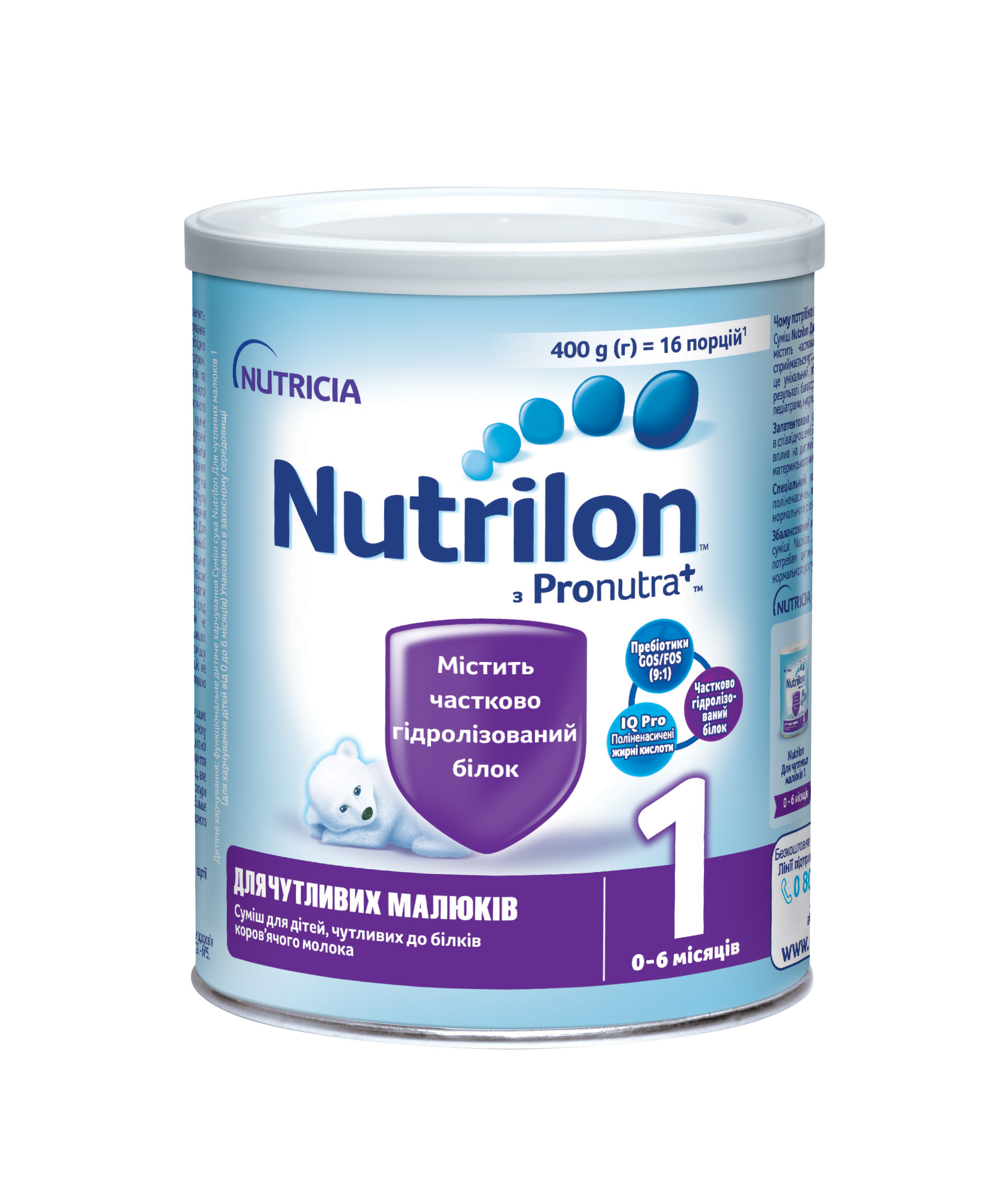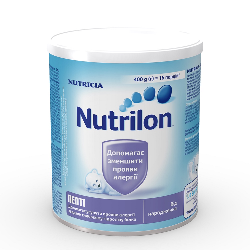 - Nutrilon Pepti — суміш на основі глибокого гідролізату сироваткового білка, тобто білок у ній розщеплений на дрібні фрагменти (пептиди), які значно рідше викликають алергічну реакцію.